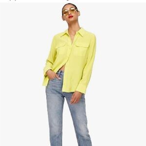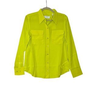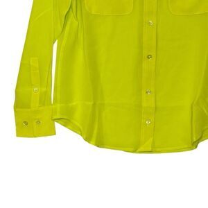Equipment Slim Signature Neon Green Silk Long Sleeve Button Up Shirt | Size S