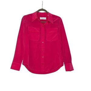 Equipment Slim Signature Pink Silk Long Sleeve Button Up Shirt | Size S