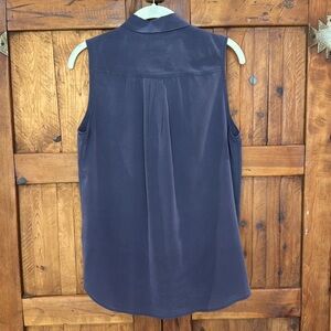 Equipment Femme sleeveless button down top. Front flap pockets.