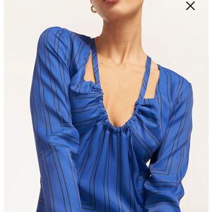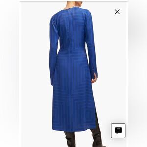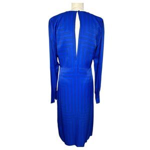 Equipment Vera Surrealist Blue Long Sleeve Deep V Neck Dress| Size 8
