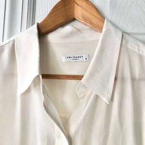 Equipment Winter White Silk Daddy Button Down Cut Sleeves Blouse Medium