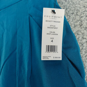 These are Equipment Femme Beckett Trousers, size 4, in Deep Lagoon color.