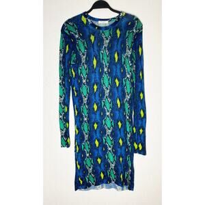 Equipment Women's Blue Green Black Snake Skin 100% Cashmere Bodycon Sweater Dress