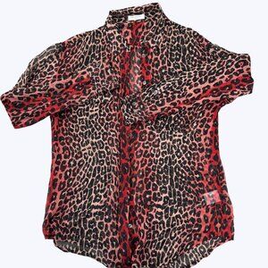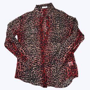 Equipment Women's Button Front Blouse Leopard Print Silk Size Small