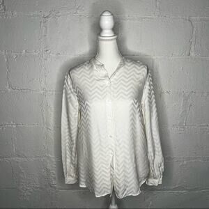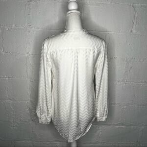 Equipment Women's Femme Silk Chevron Collarless Button Cuff White Blouse XS