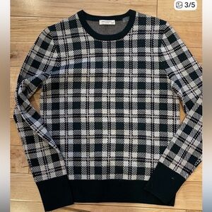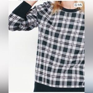 Stay cozy and stylish with this plaid women's sweater. Featuring a classic black and white design, it's perfect for any occasion. Pair it with your favorite jeans for a chic look.