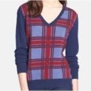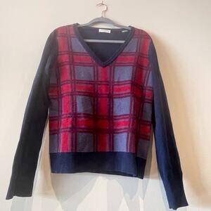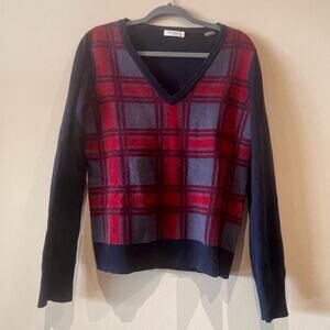 Equipment Wool/Yak blend plaid v-neck pullover sweater size medium