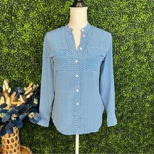 Equipment femme Blue Button Down Shirt with Cuffed Sleeves and Mandarin Collar