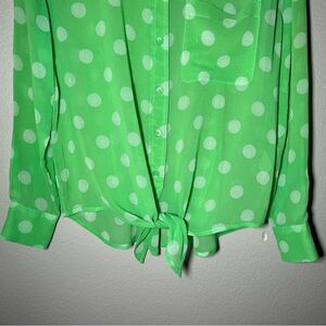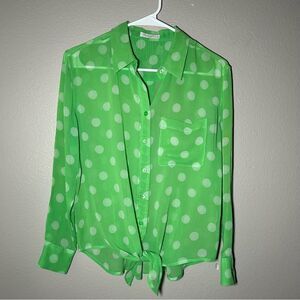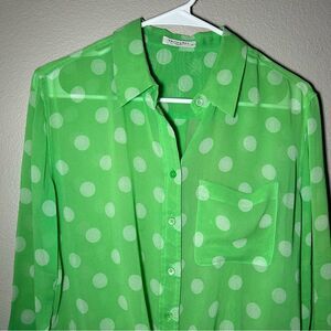 Equipment green polka dot 100% silk button down sheer blouse women’s size XS