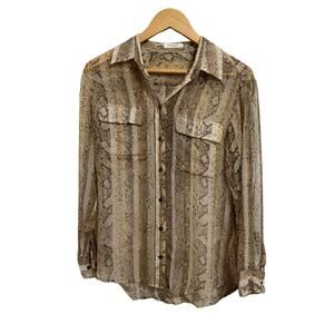 Equipment silk snake print button up long sleeve brown blouse size XS