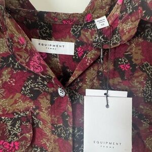 This Equipment button down shirt features a striking red hue and a notched collar, offering a sophisticated touch to your wardrobe. Crafted with a buttoned style, it is perfect for both casual and business casual settings. The lightweight fabric ensures comfort and versatility for any occasion.