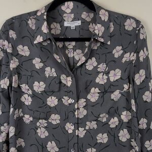 Equipment Femme Silk Floral Gray Button Front Women's Blouse Top Size S