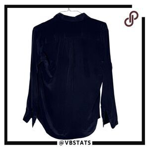 Equipment Femme Women's Long Sleeve Silk Knox Lace Up Tie Blouse Navy Blue Small