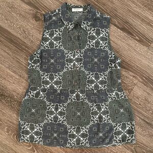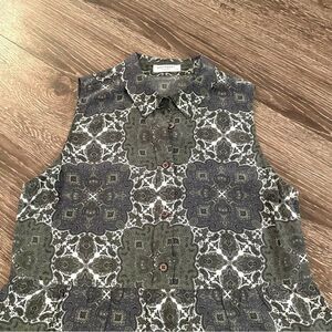Sleeveless collared silk blouse. This has buttons down half of the blouse