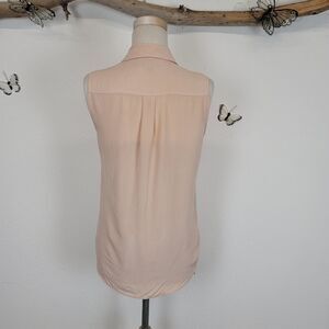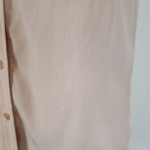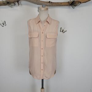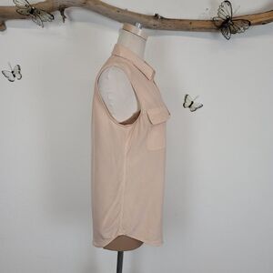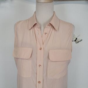 Blush nude 100% silk sleeveless top with cargo breast pockets. Has a flew flaws which are noted in the closeups.