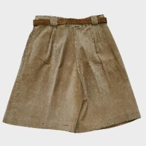 Equipt Tan Luxury Genuine Suede Leather Pleated Belted Shorts Women’s Size 9/10