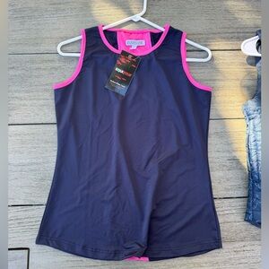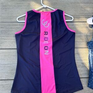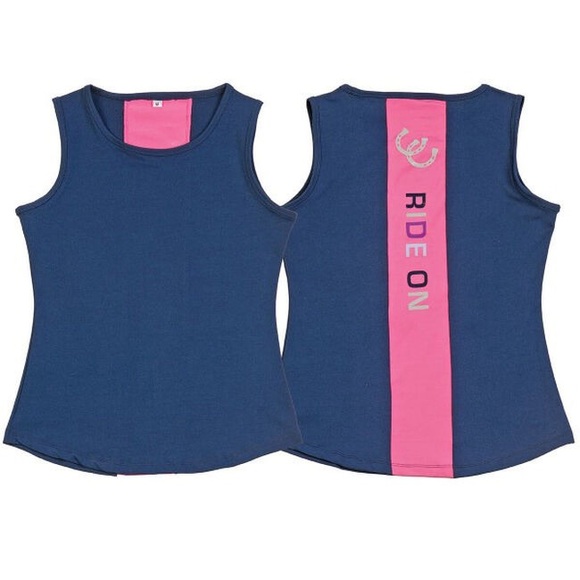 The perfect mix of casual comfort and performance. A scoop neckline with fun equestrian saying on the back highlights the passion of young riders. Featuring an athletic cut, 4 way stretch, shaped hemline for extra coverage in the saddle, and contrast trim and stitching for an added touch.