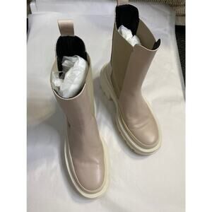Equitare Women's Leather Aletta Ankle Boot Side Elastic Round Toe Cream Size 37