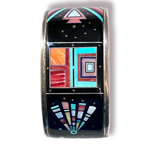 Erwin P. Tsosie Navajo Sterling Silver Micro Inlay Multi-Gemstone Cuff Bracelet
