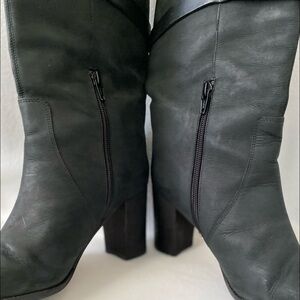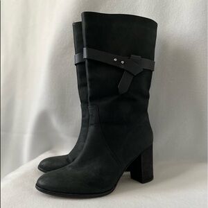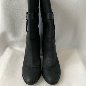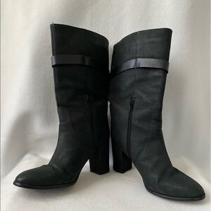 Eram Black Leather Euro Size 40 (US Size 9) Mid-Calf Block Heel Round Toe Boots. Preowned item in good condition with minimal wear on heels and boots. Please look at all pictures carefully.