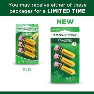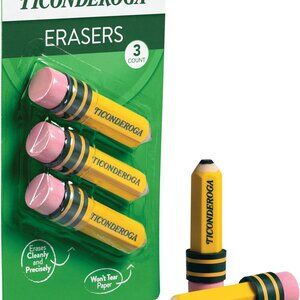 Erasers, Pencil Shaped, Latex-Free, Yellow, 3-Pack
