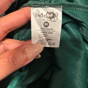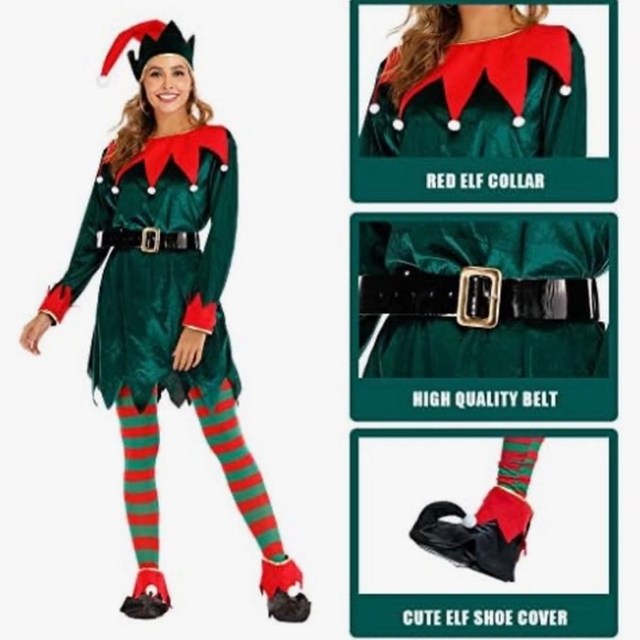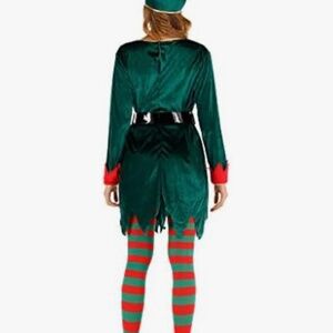 * No refunds* The Eraspooky Women's Christmas Elf Costume in Size Medium is a festive and whimsical outfit perfect for holiday gatherings, shows, or themed events. This complete outfit in green polyester material includes all the necessary elements to transform into a jolly Santa Elf, with a fun and playful style that is sure to bring some holiday cheer. The costume is ideal for women looking to channel their inner elf and spread some Christmas joy.