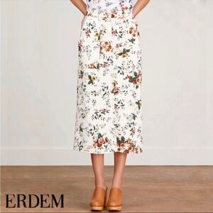 Erdem Artie Cotton-Blend Midi Skirt with Pockets in White/Multi Floral