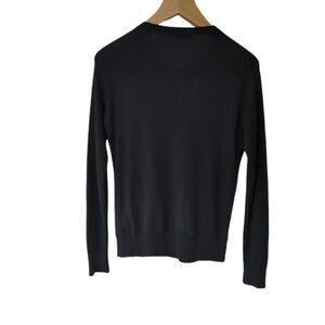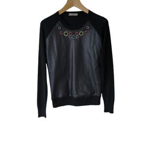 Erdem Embellished Leather Top Large Black Silk Cashmere Knit Crew Neck Pullover
