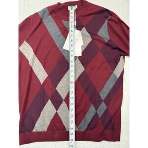 Erdos Mens Xl PURE CASHMERE Jumper Sweater CRANBERRY RED Vneck Pullover mens LG