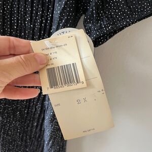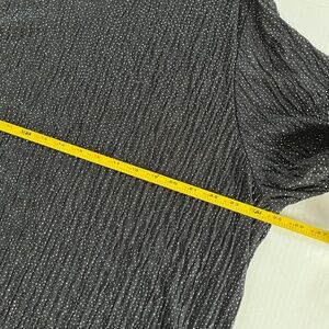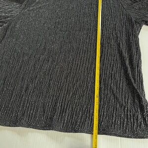 Erena Plus Sz 2X Black Pullover Shiny Blouse Textured Short Sleeves Side Slits
