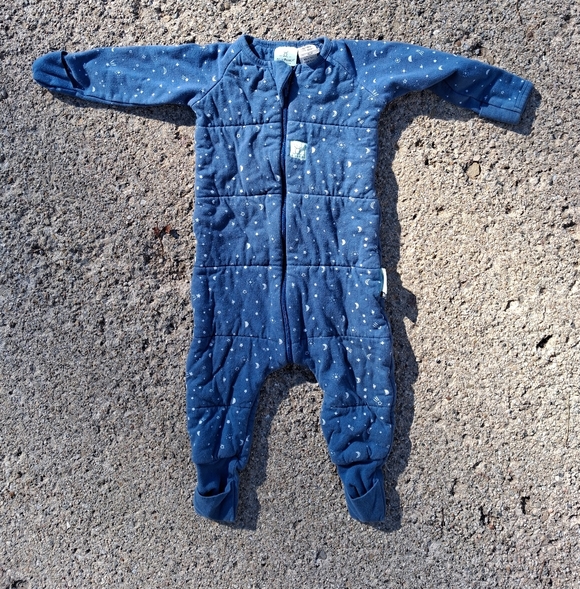 Actually in great shape, but used for camping so has been exposed to all elements and lived in storage. Zipper goes fully up the back for diaper changes even in cold weather. No major stains no holes that I can see.