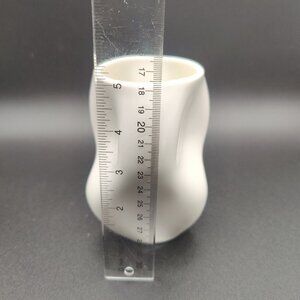 Made of premium quality porcelain, microwave safe as well as dishwasher safe. Measures about 5" tall and 3.5" wide. Very clean and tactile design with just the right fit.