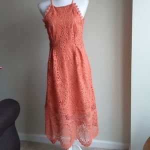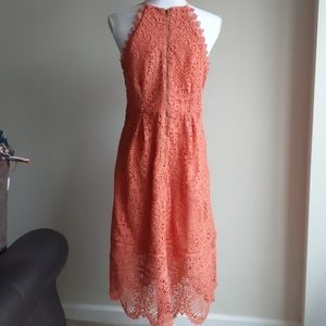 Eri + Ali Anthropologie Coral Pink Lace Ava Dress