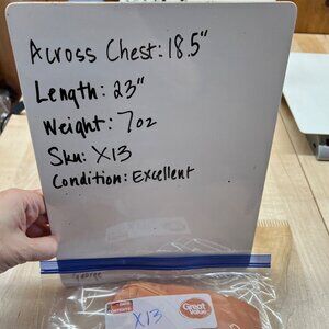 Across chest = 18.5", length = 23". Condition is excellent with no visible flaws.
