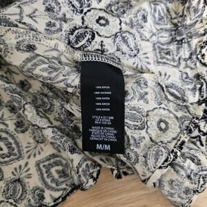 Eri + Ali Boho Blouse Womens Medium Black White Floral Print Bell Sleeve Top