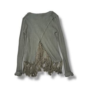 Eri + Ali Green Ribbed Knit Fringe Hem Sweater Women’s Medium