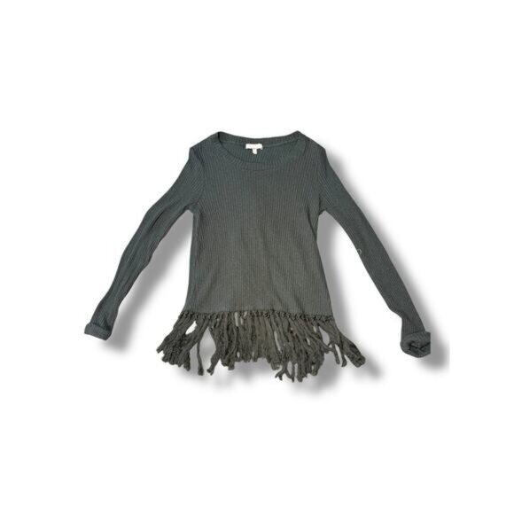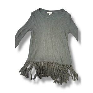 Eri + Ali Green Ribbed Knit Fringe Hem Sweater Women’s Medium