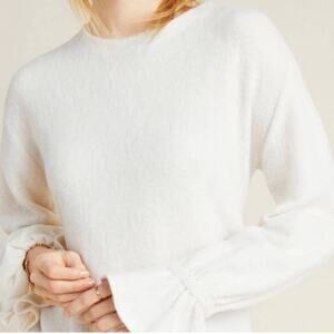 Anthropologie Eri + Ali Ivory Sasha Hacci Ruffle Cuff Sleeve Top