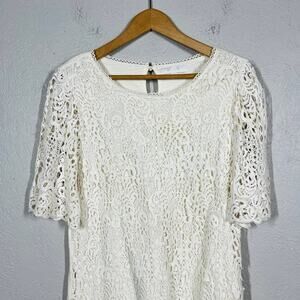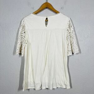 Eri + Ali Lace Tunic Top Bell Sleeve Casual Knit Ivory White - XL