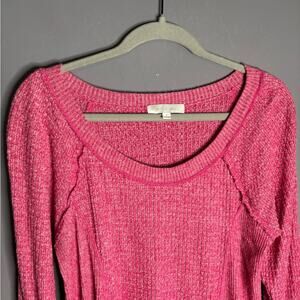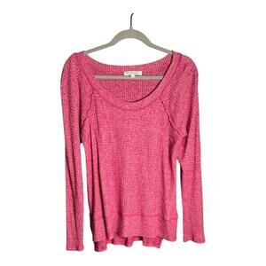 Eri & Ali Pink Long Sleeve Waffle Knit Scoop Neckline Top Size Small