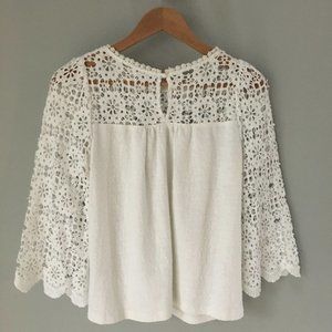 This angelic white Eri + Ali top is one of my favorites. It is absolutely stunning on. Top looks almost new and is not stained or torn. Message me if you have questions.