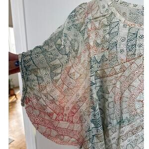 Add a playful, artistic touch to your wardrobe with this Eri + Ali by Anthropologie balloon sleeve blouse. Featuring dramatic batwing-style sleeves and a colorful pattern, this lightweight top offers a relaxed, boxy silhouette that’s both comfortable and eye-catching.