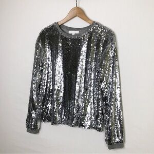 Eri & Ali by Anthropologie Babette Silver sequin top