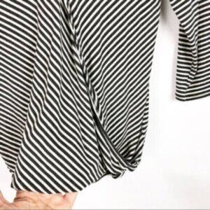Eri + Ali by Anthropologie | Grey & White Striped 3/4 Sleeve V-Neck Top Size S