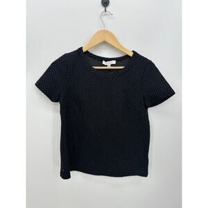 Eri+Ali Womens Black Polka Dot Stretch Tee Size S Thick Stretch Boxy Minimal