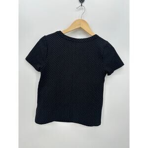 Eri+Ali Womens Black Polka Dot Textured Stretch Tee Size S Thick Stretch Boxy Minimal