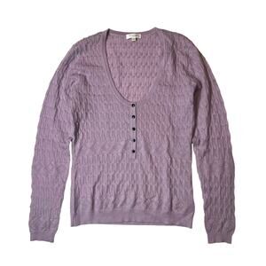 An exquisite Eric Bompard pure cashmere sweater in a soft lilac hue, showcasing the brand’s signature French refinement and craftsmanship. This lightweight knit features a delicate textured pattern throughout, a deep scoop neckline with a five-button Henley placket, and fine ribbing at the cuffs and hem. Made in 100% cashmere, it offers the exceptional softness and durability for which Eric Bompard is renowned.