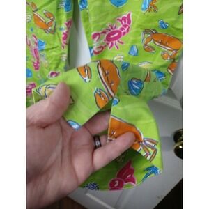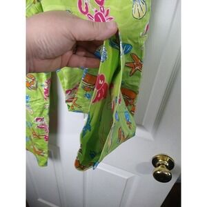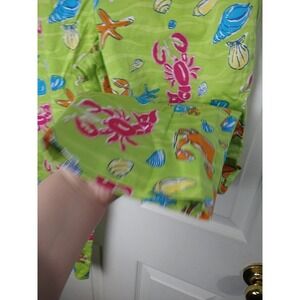 Eric casual green pink orange cropped flat front Capri pants in good condition. Ocean themed loud colored pants. Straight leg straight Hemline with slits and. Zip clasp close on side of pants.
