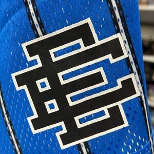 Experience the perfect blend of style and comfort with Eric Emanuel's blue and white athletic shorts. Designed for optimal performance, these shorts offer a sleek and modern look, ideal for any active occasion. Crafted with high-quality materials, they ensure durability and ease of movement.