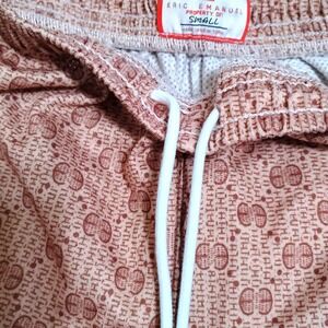 Keywords: Eric Emanuel, EE shorts, women's shorts, small shorts, all over print, drawstring shorts, athletic shorts, casual shorts, mesh lined, streetwear shorts, property of, designer shorts